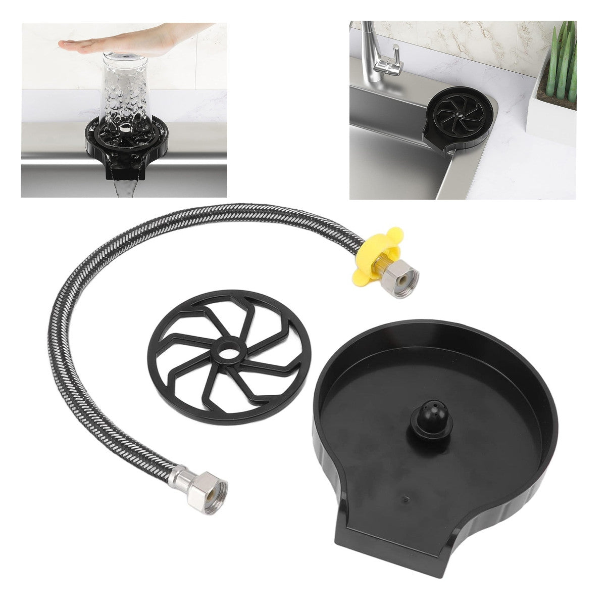 La lavadora de vasos de fregadero con potentes chorros de agua enjuaga bien los residuos en segundos, mientras que el sutil saliente dirige el flujo de agua al fregadero de la cocina para una fácil limpieza.el enjuague automático de vidrio puede llegar a lugares que tu mano a menudo no puede, además de que es ideal para cristalería delicada. Su color negro simple y mate combina con cualquier estilo de cocina o bar. Además, el sonido que hace, ya que elimina la escoria de café, las heces de vino tinto seco o el puré de verduras con facilidad es enormemente satisfactorio.CARACTERISTICAS:•Fácil de operar con una mano, simplemente presione la boquilla de alta presión con la boca de la copa hacia abajo.•Ambiente de moda, apariencia versátil, fácil de limpiar, sin óxido.•Lavado en aerosol multiángulo, más rápido y más limpio, una pulsación inmediatamente para lavar, se cierra automáticamente.•Adherencia estándar, versatilidad, ampliamente adecuada para bares comerciales y domésticos.CONTENIDO:1 arandela de tazas1 soporte.1 manguera.GARANTIA: 30 días por defectos de fábrica, es decir, si el producto llegó roto o sin funcionamiento.Si requieres garantía con nosotros déjanos un mensaje por interno y con mucho gusto te ayudaremos con el correspondiente cambio o devolución.REQUISITOS OBLIGATORIOS:Caso de pedido ID:Guía de envió inicial:Novedad (Foto o Video donde se evidencie la novedad que indica):Estado del producto:* Debe estar en las condiciones que se recibió, con su empaque original, con las etiquetas, sellos de seguridad, y contar con todas sus partes y/o accesorios. Sin rayones ni manchas. Se recibirá únicamente en óptimas condiciones.